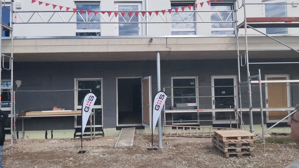 Wie Jörg Wiskirchen, Vertreter der ausführenden Firma CF Campus Flamersheim GmbH & Co KG, ausführte, wird diese Kita innerhalb von 6 Monaten nach Baubeginn komplett bezugsfertig und incl. der Außenflächen komplett nutzbar sein. Dies hängt damit zusammen, dass die Baupläne für genau dieses Objekt bereits an anderer Stelle zweimal umgesezt worden sind und man insofern auf bestehende Abläufe, Bauteile und eingespielte Handwerker-Teams zurückgreifen kann.